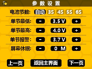 - 电池节数:表示使用几 S 电池。若选择“自动”,请确保每次上电电池保持接近满电。
