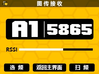 显示当前图传频道、频率及 RSSI。点击“选频”或“扫频”进入对应页面。