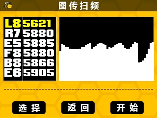 - 选频页面:可选择 A/B/E/F/R/L 频段与 1–8 频道。